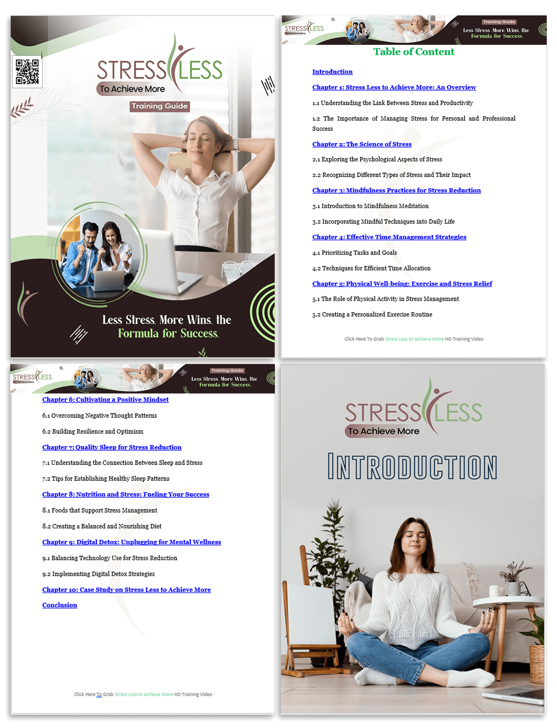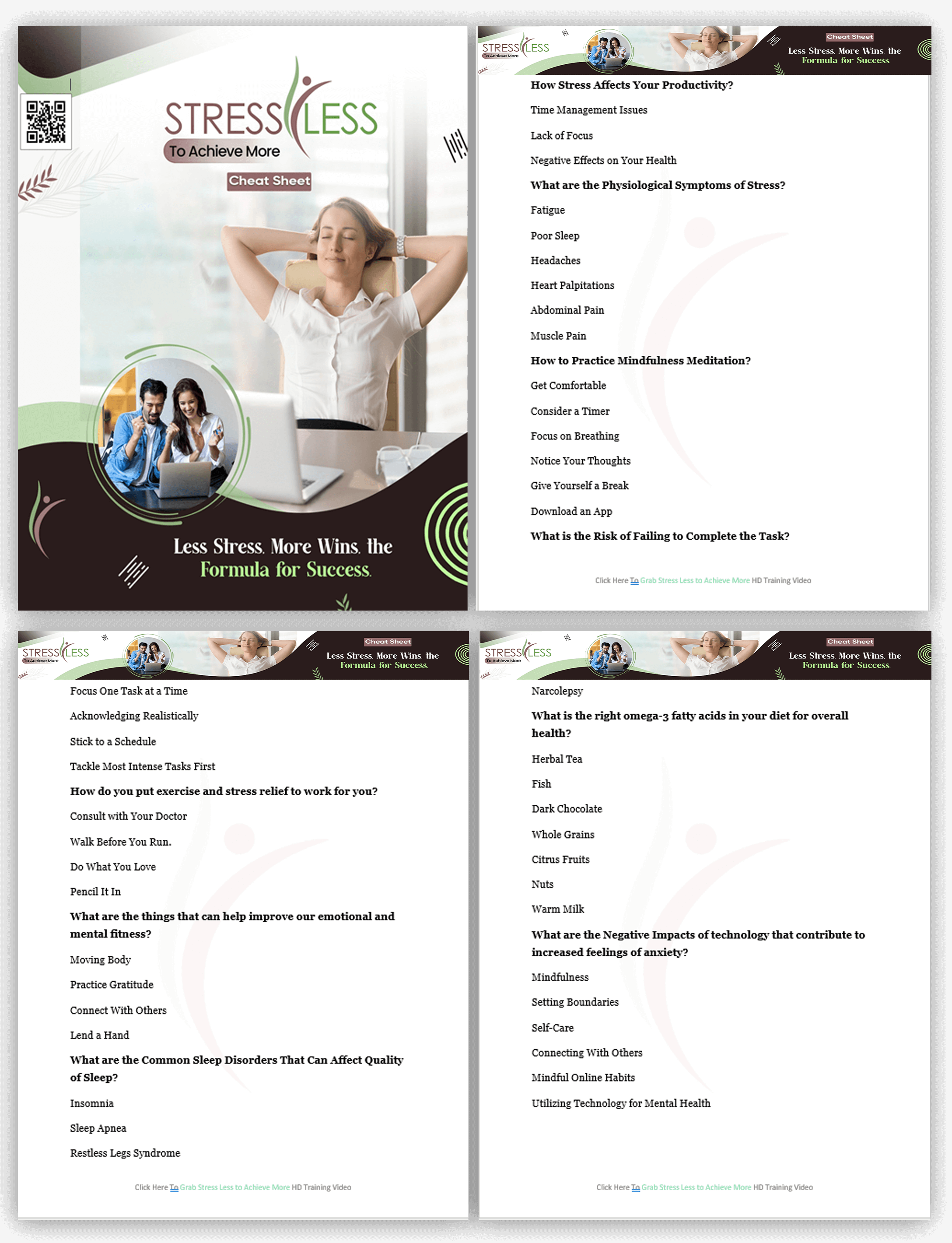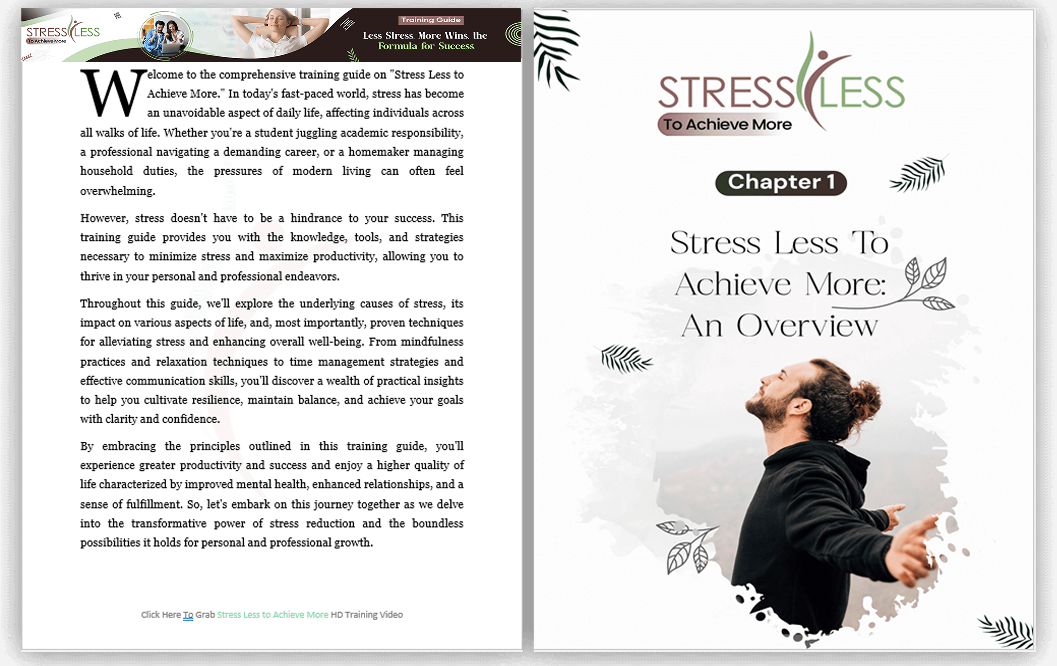 Here is the list of things you will explore in our Advanced "Stress Less to Achieve More". Informative Course.